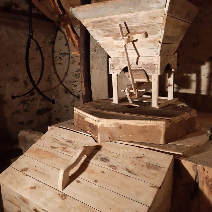 Otros se construyeron gracias a la financiación de una familia o un particular mejor situado económicamente y normalmente eran trabajados por ellos mismos a cambio de una parte de la molienda o lo que llamaban «la maquila».