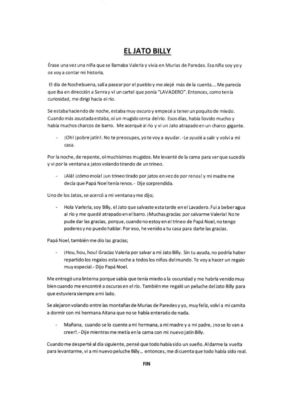 En la categoría infantil, el premio ha recaído en el cuento “EL JATO BILLY” de la niña VALERIA SILVÁN RODRÍGUEZ .