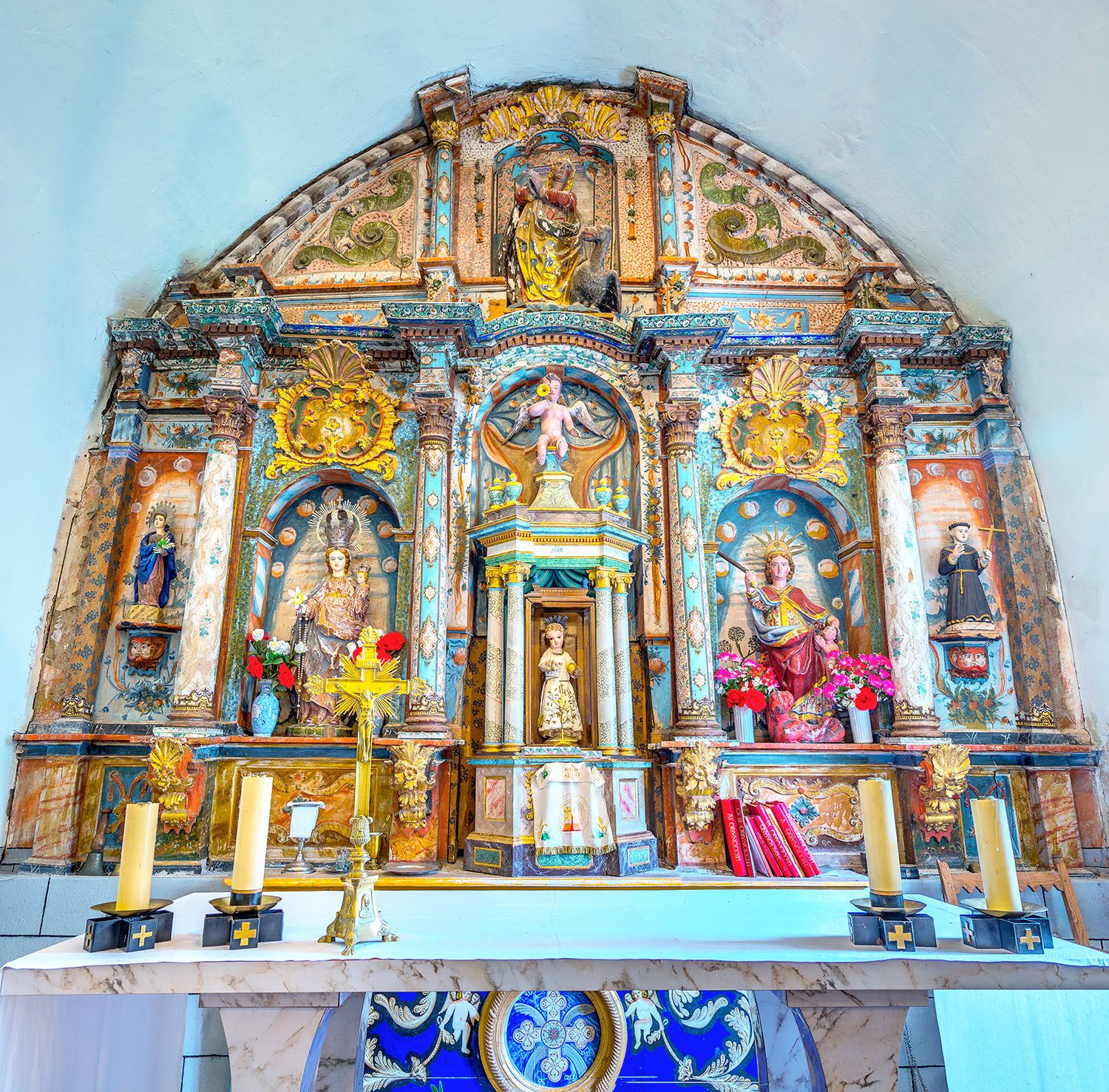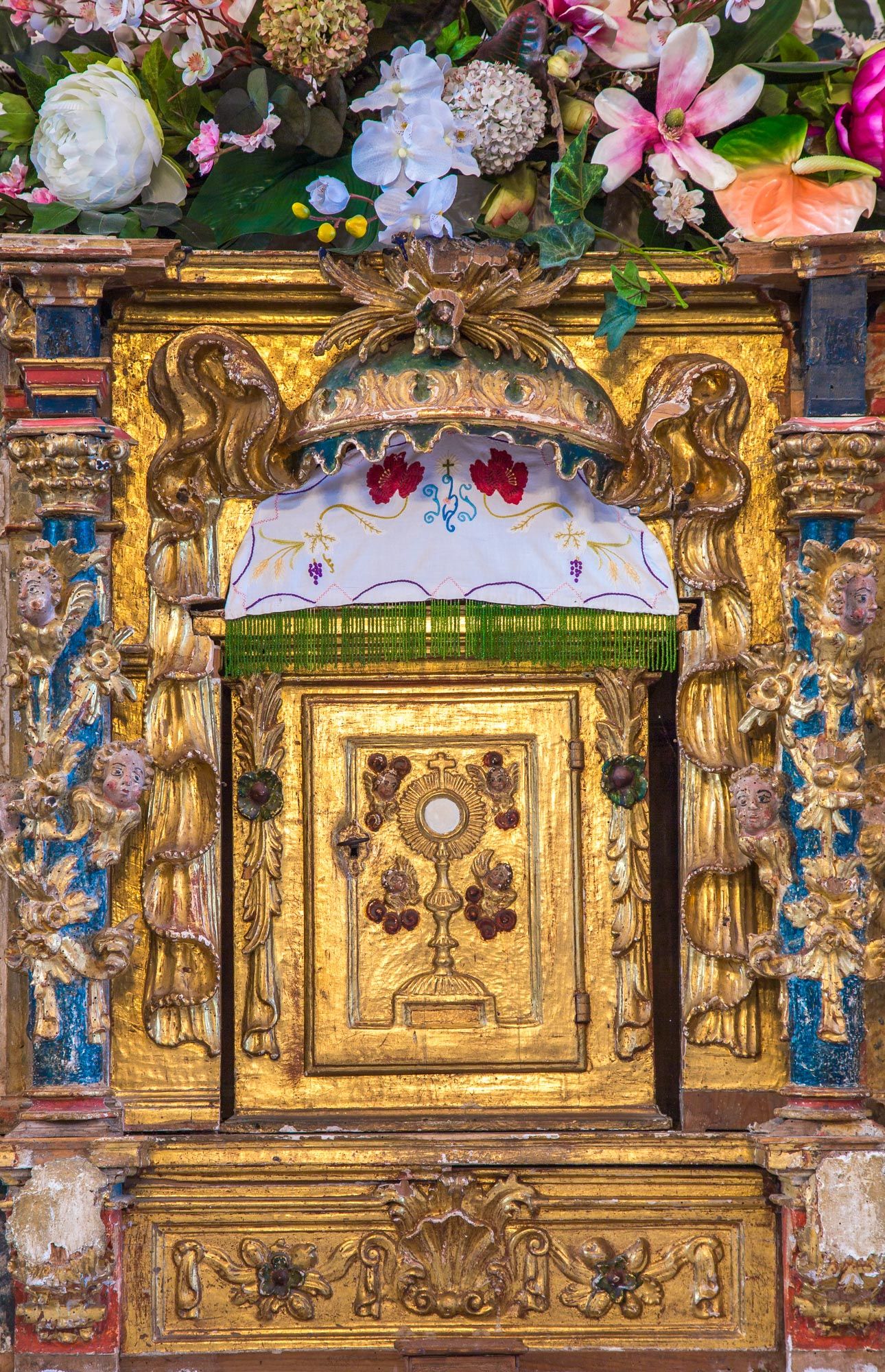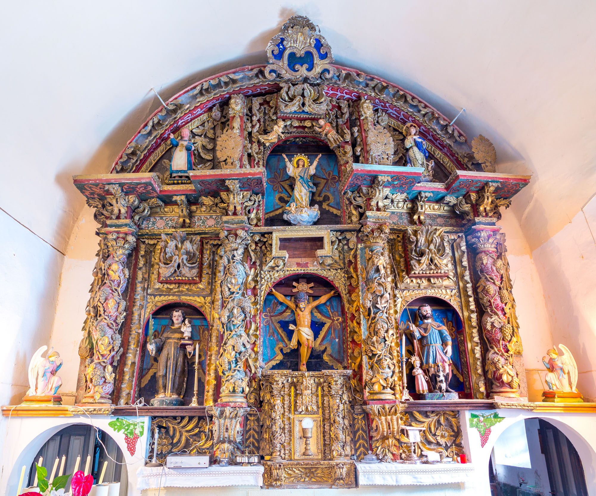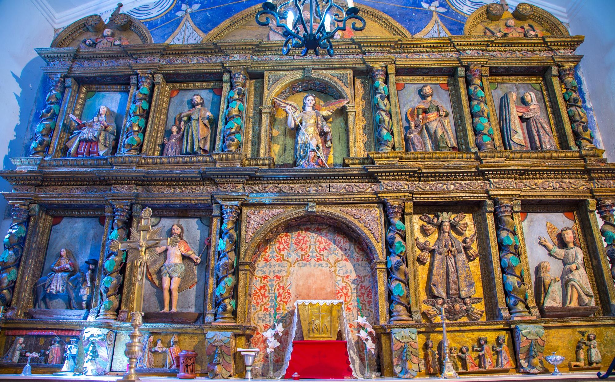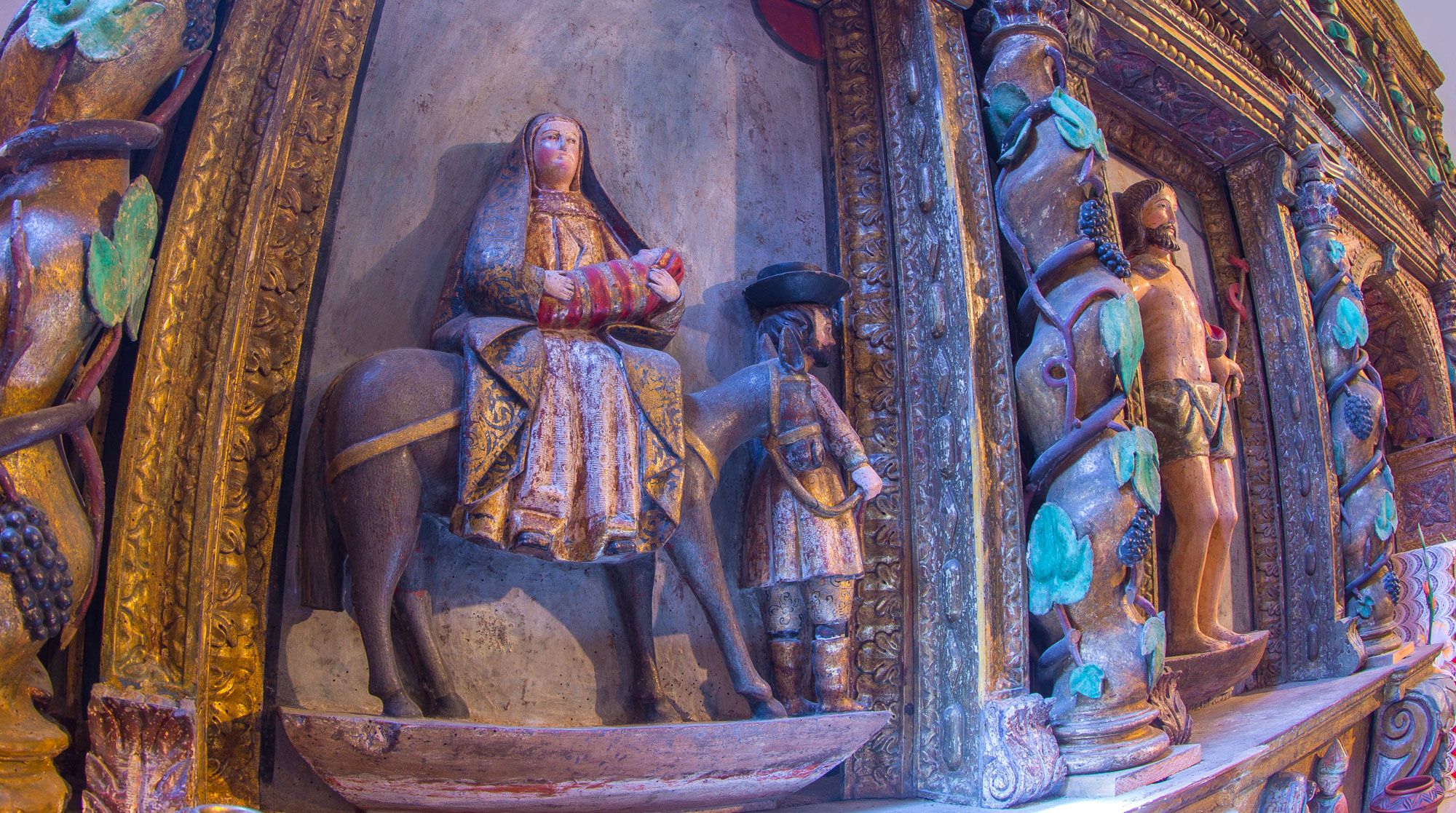 Consagrada a Santa María, la iglesia de Fasgar aún conserva el retablo barroco ricamente decorado.