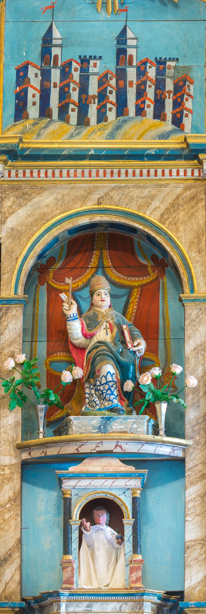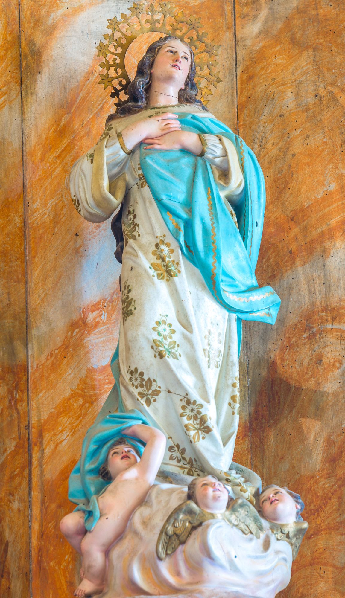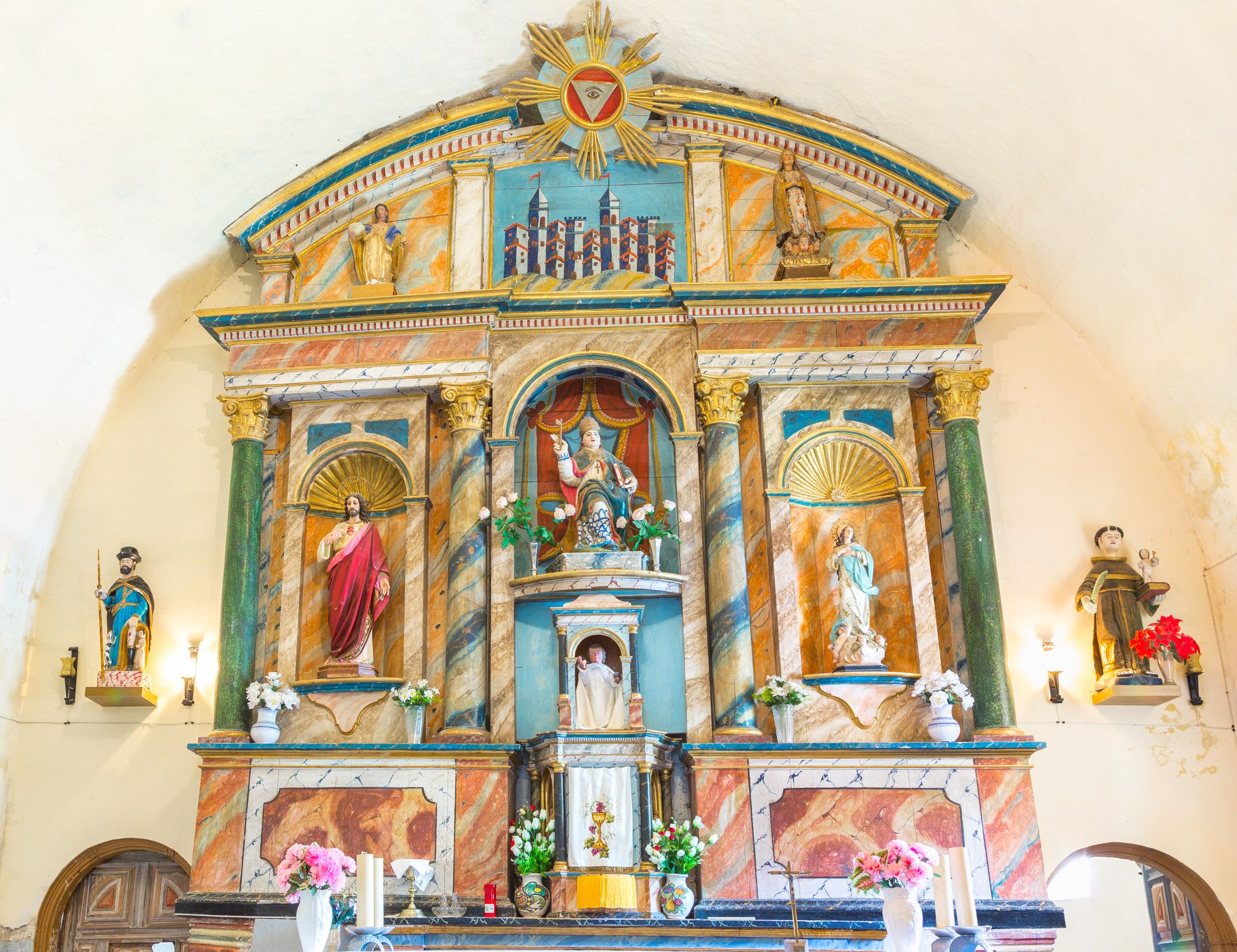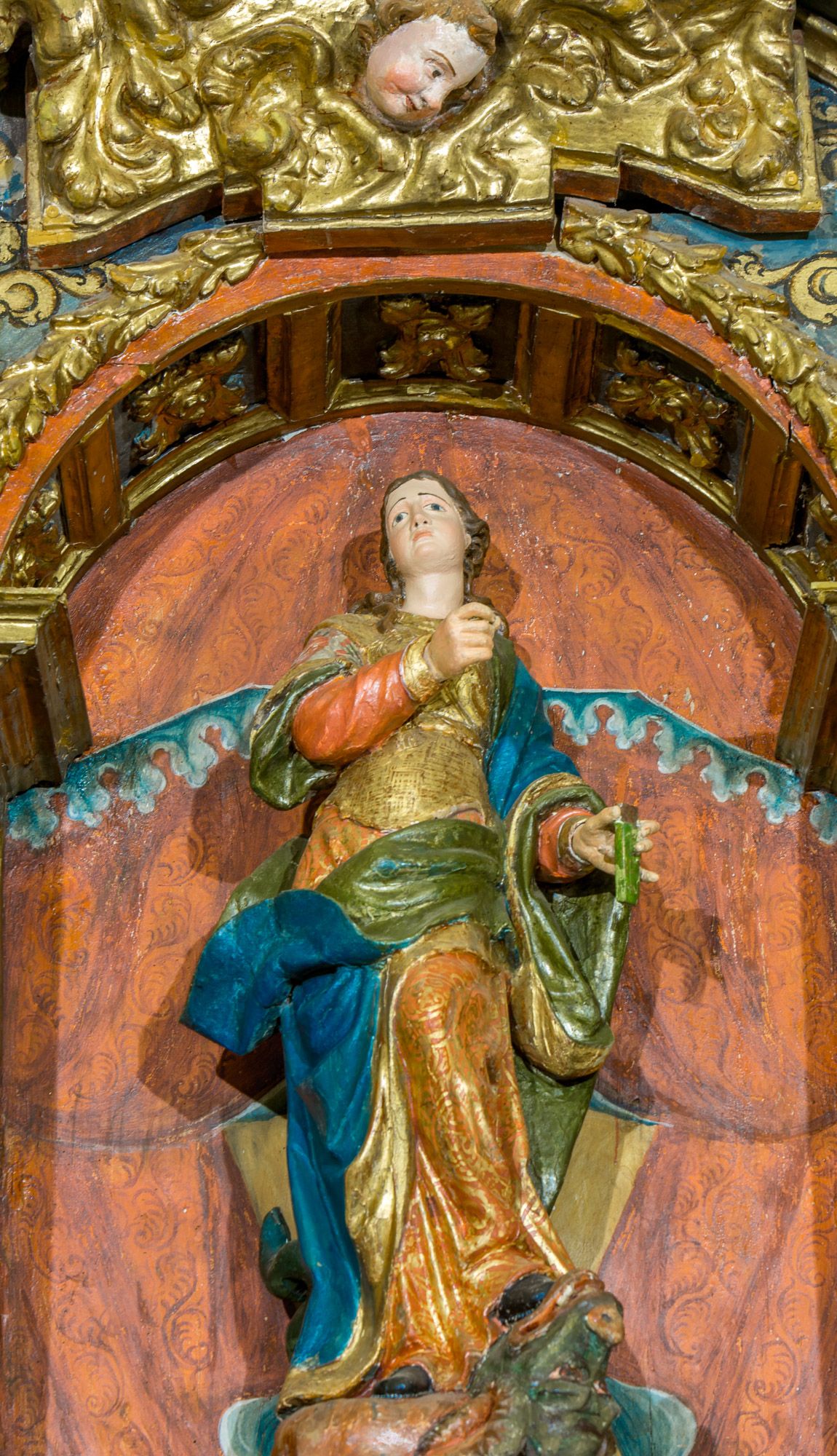 Consagrada a Santa María, la iglesia de Fasgar aún conserva el retablo barroco ricamente decorado.