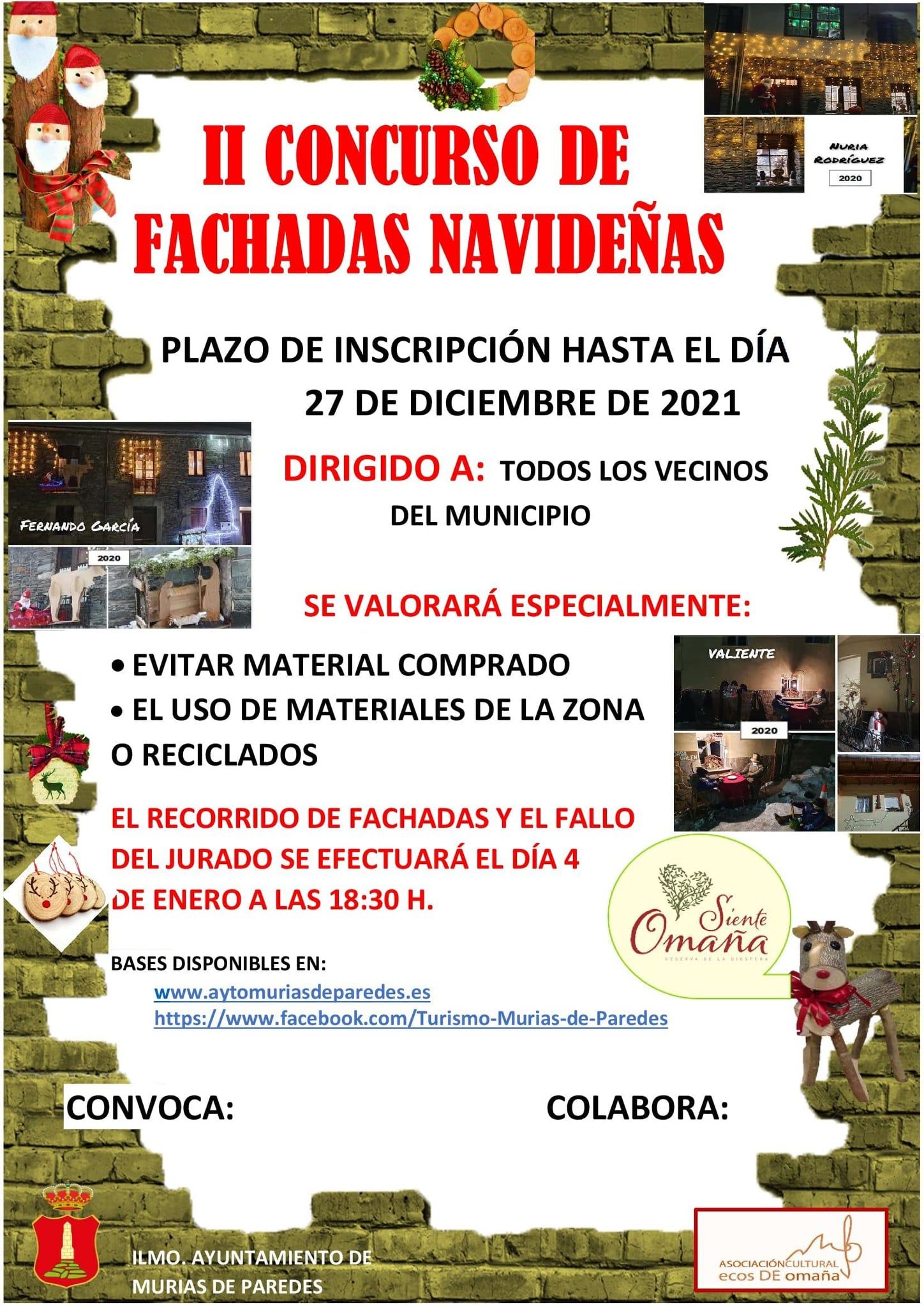 El Ayuntamiento de Murias de Paredes convoca el II Concurso de fachadas navideñas. Aquí te dejamos los criterios de valoración que tendrá muy en cuenta el jurado. Te animamos a participar y poner bien bonita tu casa en estas fechas.